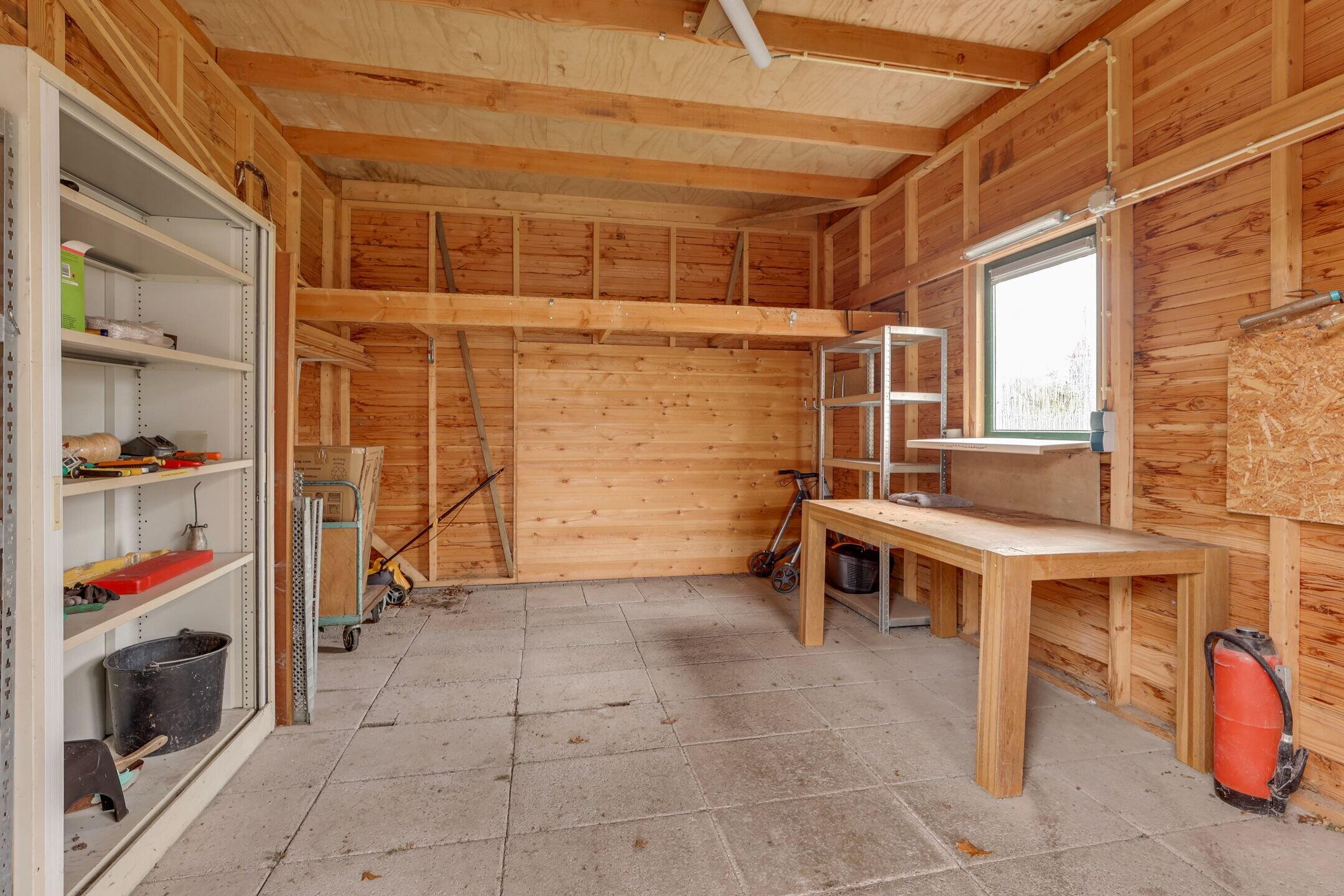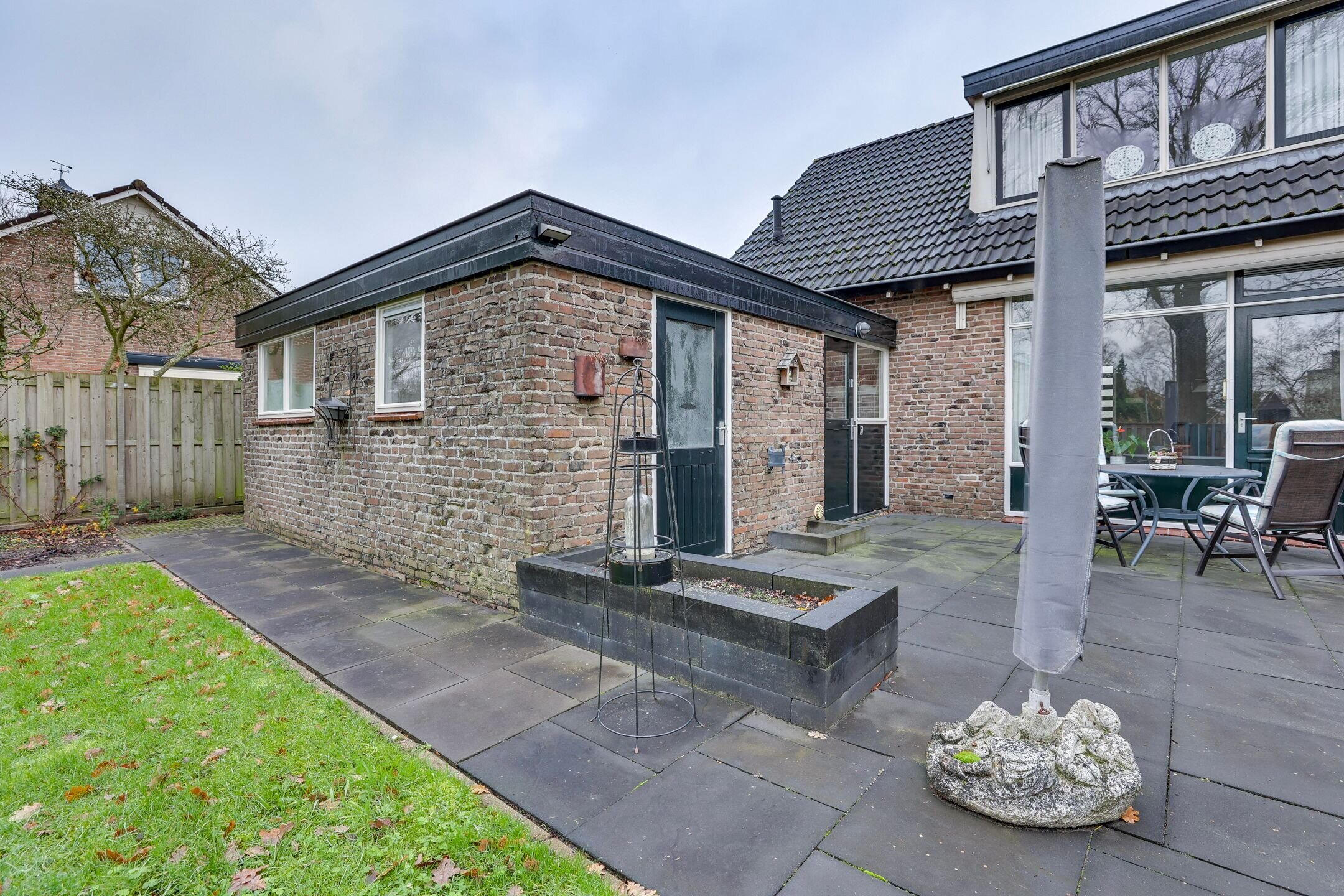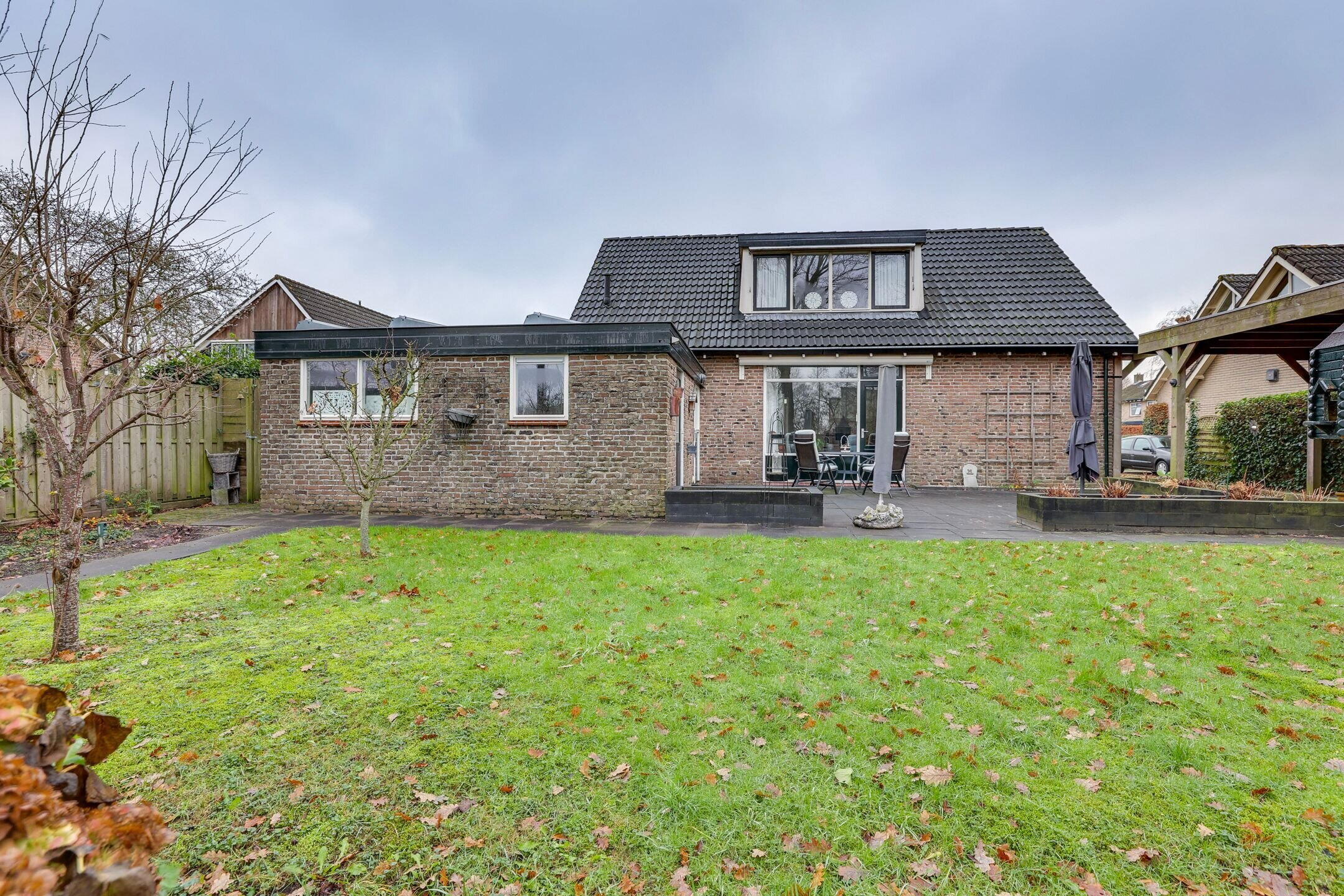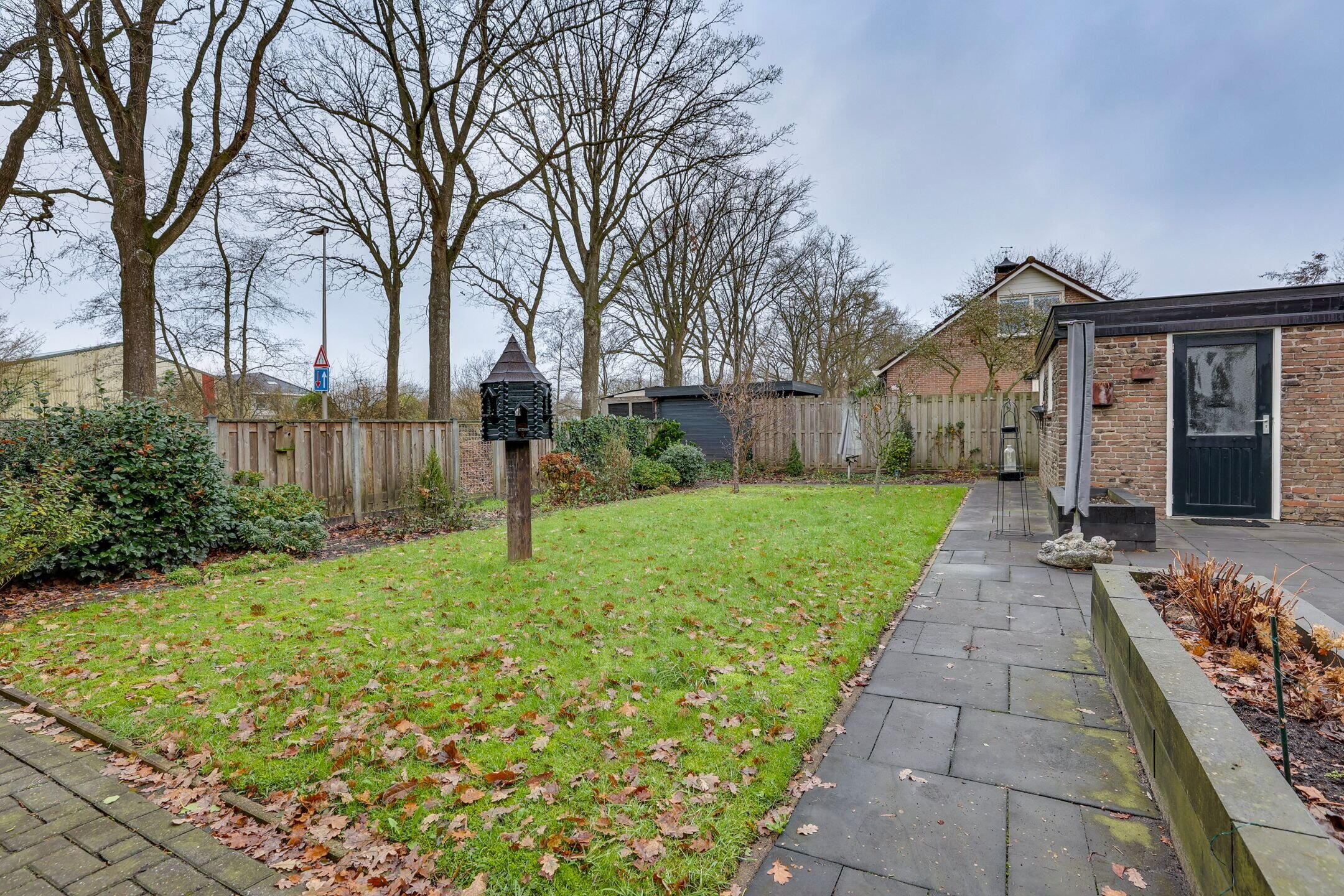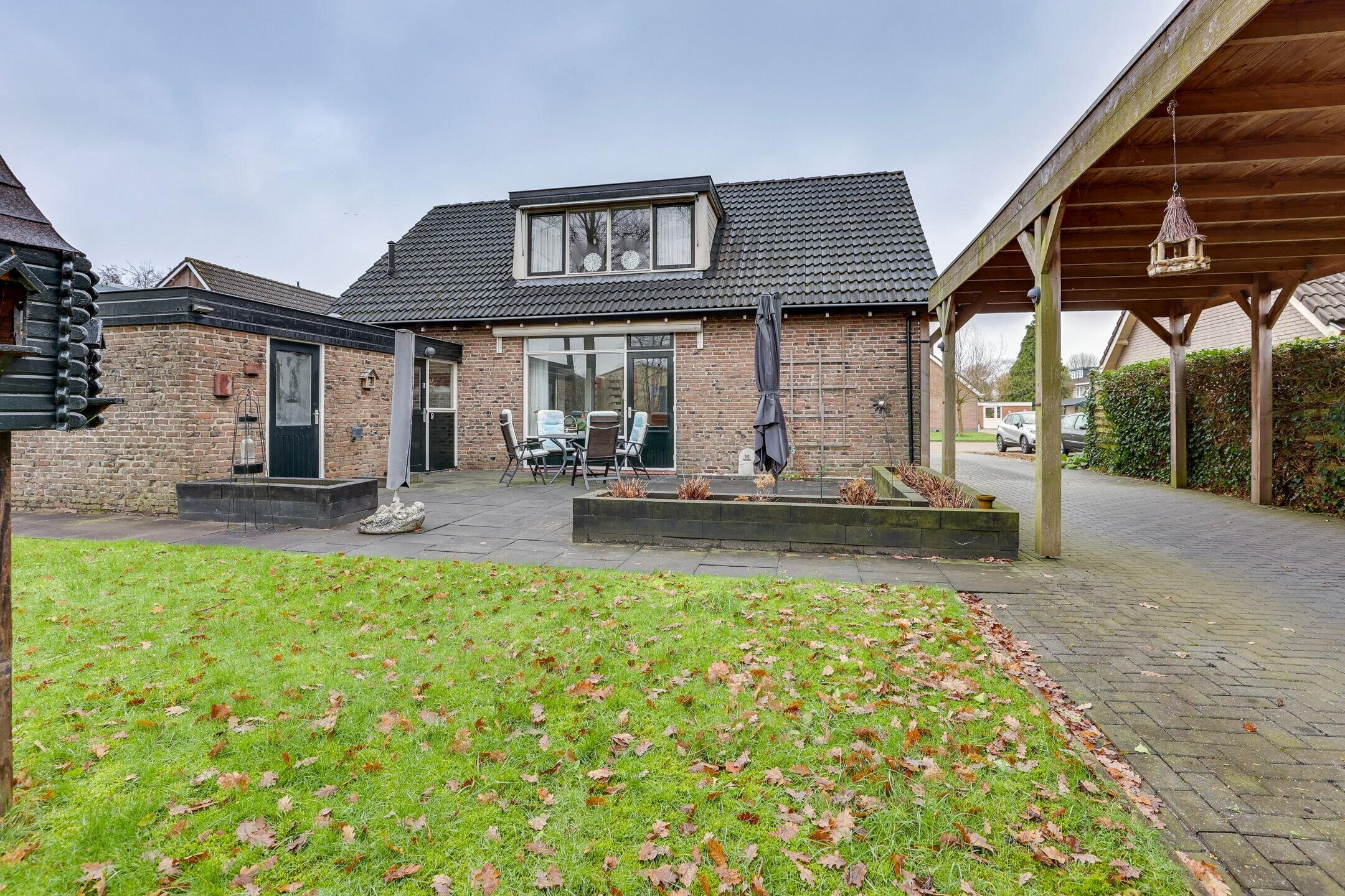 Rondom de woning ligt een verzorgde, riante tuin, waarbij de achtertuin gunstig op het westen is gesitueerd – perfect om tot in de avond van de zon te genieten. Op het perceel vindt u een aangebouwde, grote L-vormige garage met elektrische overheaddeur, een grote vrijstaande berging én een carport. Parkeren kan ruimschoots op eigen terrein.